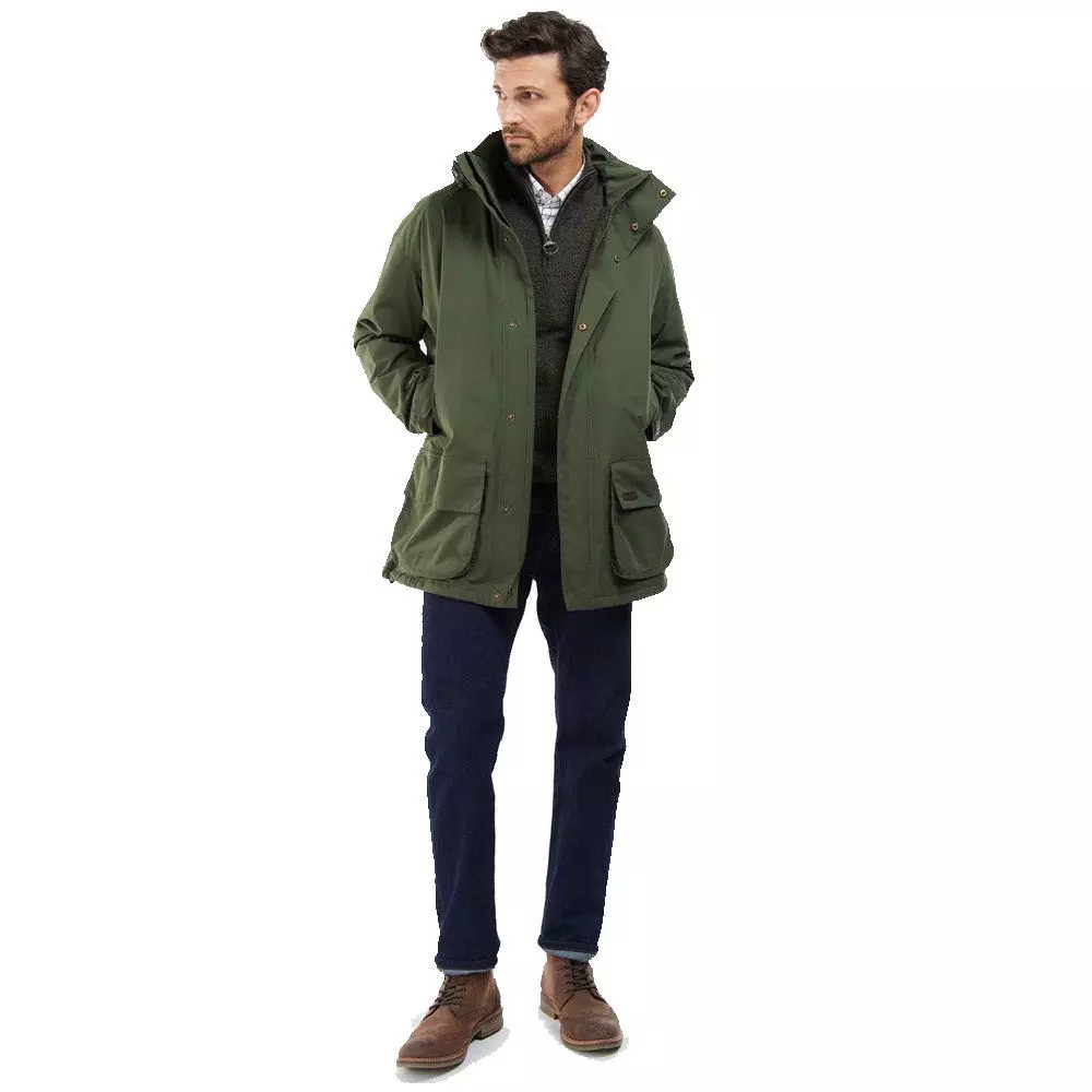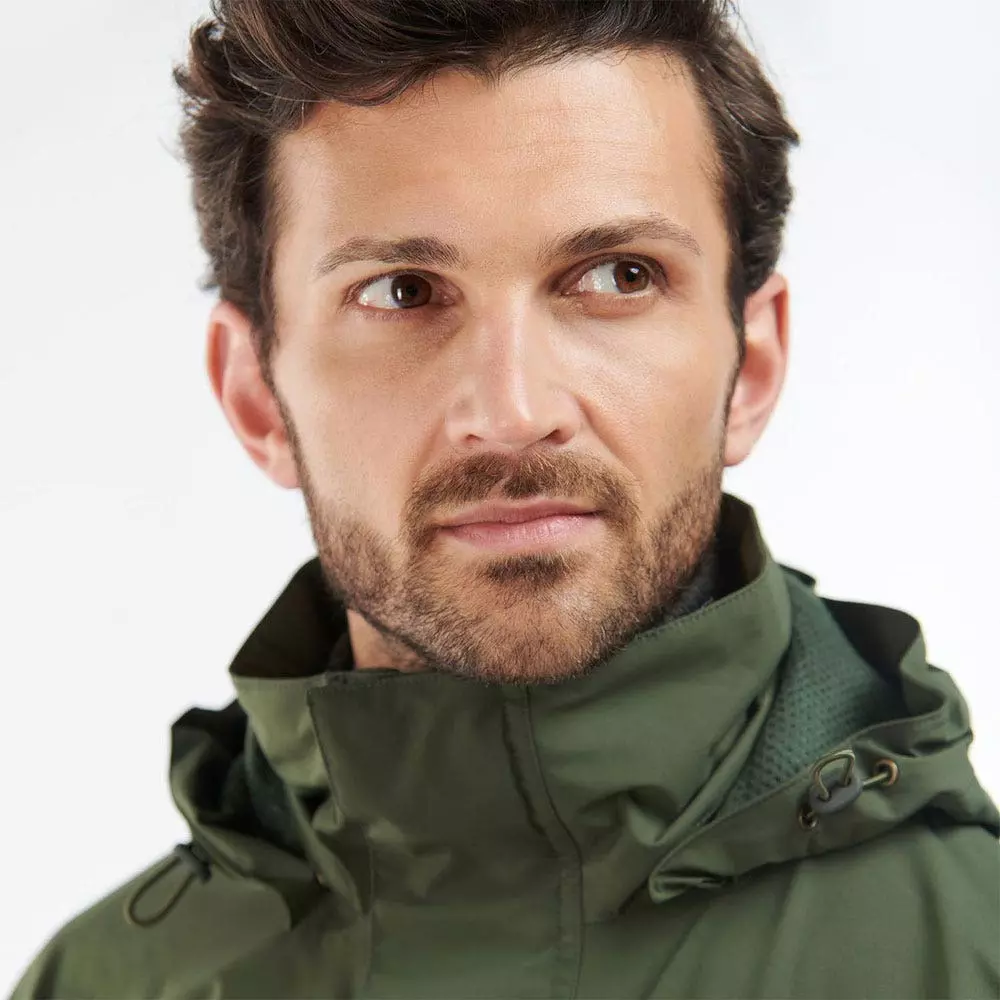 The Men’s Barbour Swinton Waterproof Jacket offers a packable solution for those wet weather days. Featuring a lightweight waterproof design that packs away into the inner jacket pocket for a handy outerwear staple, this style features a detachable hood, articulated sleeves and bellows pockets for premium storage space.
