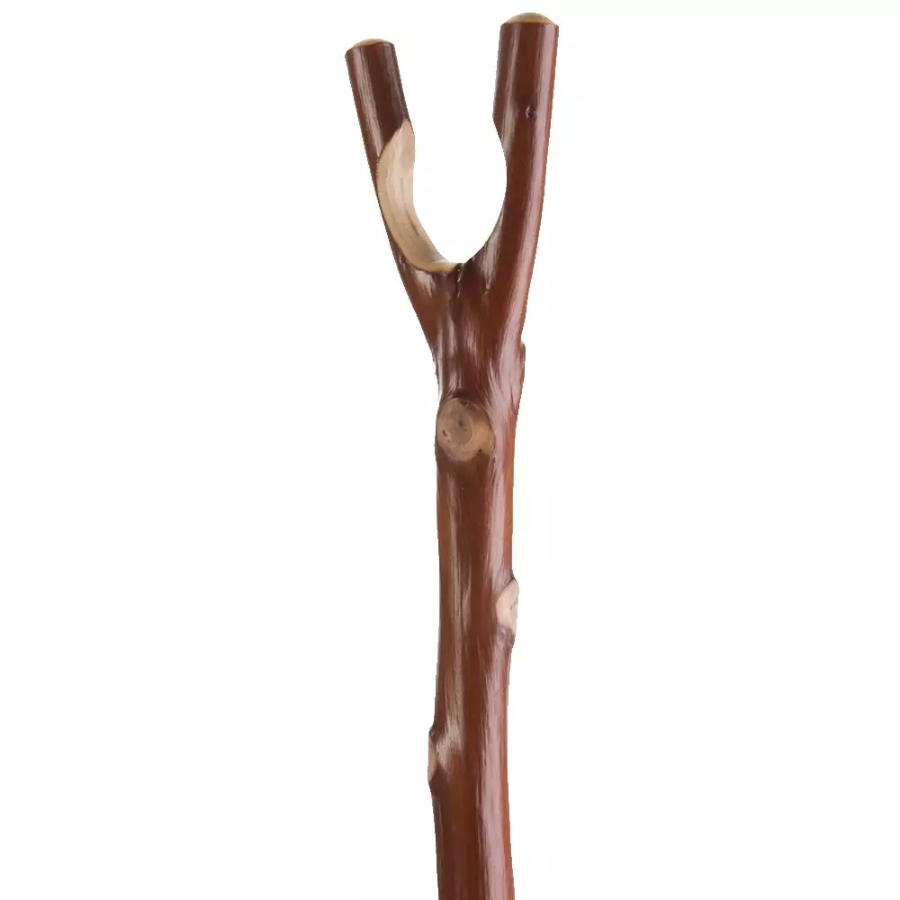A simple and classic walking stick suitable for country walks. Grown from coppiced chestnut wood, this staff has an attractive colour and features a natural ‘V’ in the wood, which forms a convenient place to rest one’s thumb whilst grasping the stick.