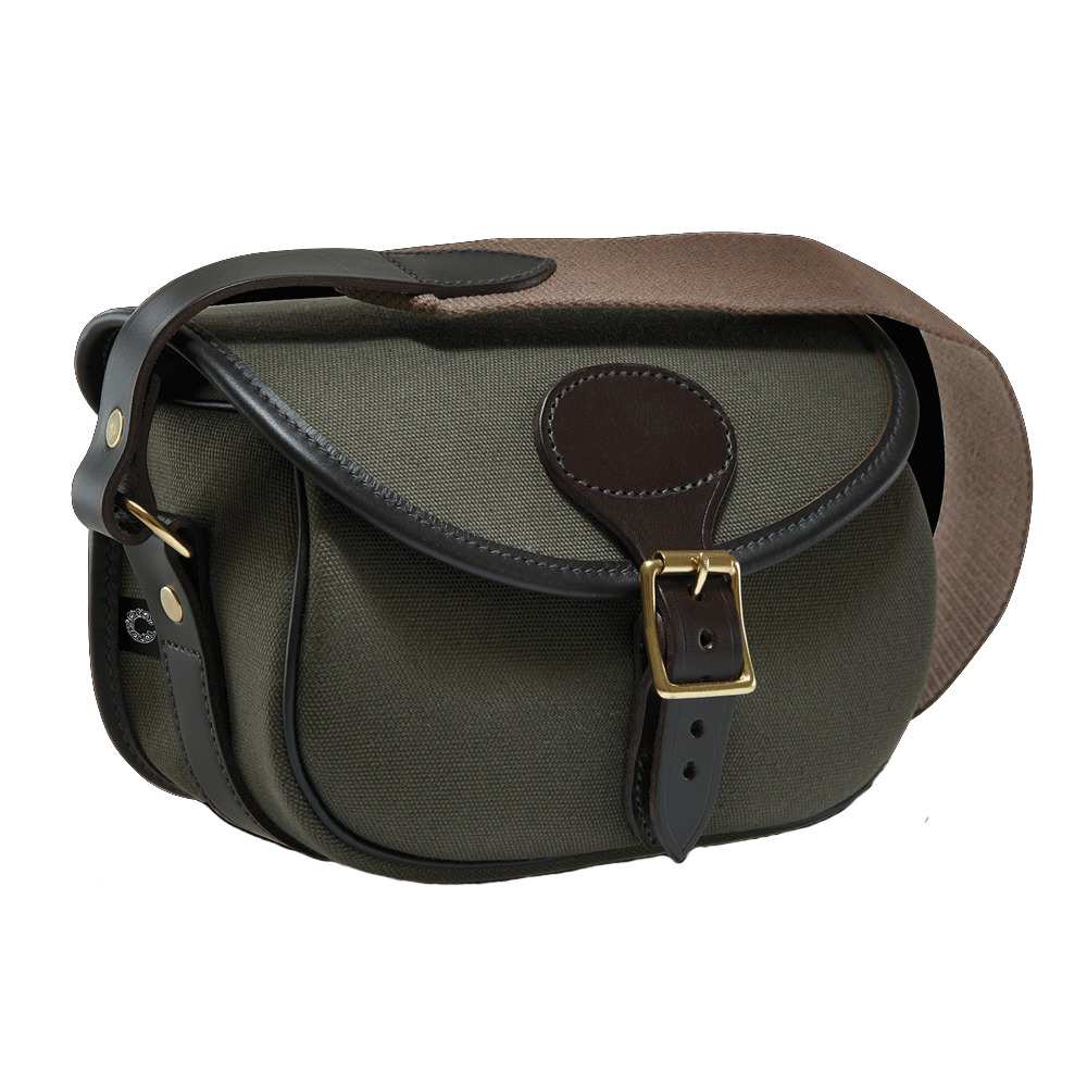 A waterproof cotton canvas Cartridge bag that has a hinged speed load design allowing for easy access
