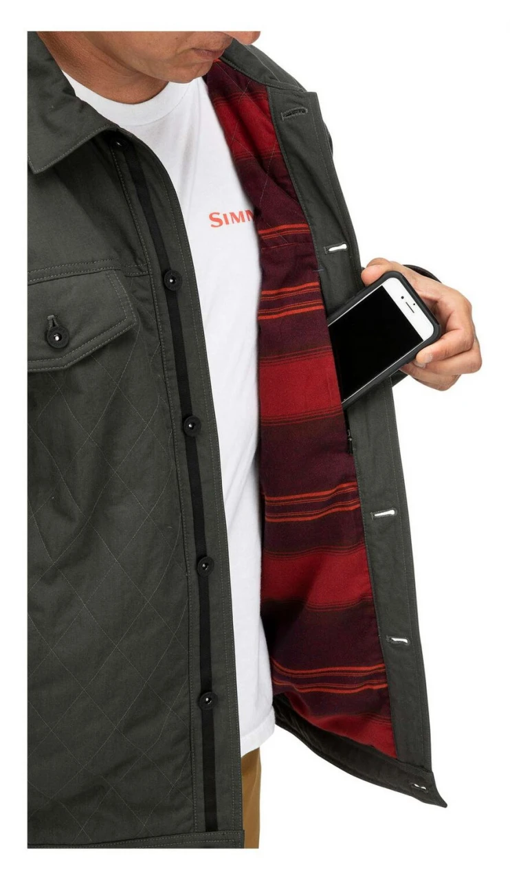 - Shanked flapped chest pockets with shank closures, handwarmer slash pockets and interior zippered pocket for essentials