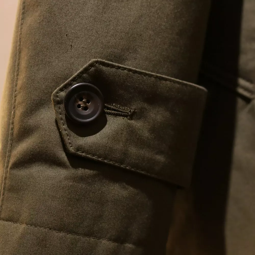 The beauty of our cotton Ventile fabric is that it ages and patinates beautifully. The Kilburn Raincoat will break in with more wear and over time not only become more and more comfortable and wearable, but also become unique to the wearer.