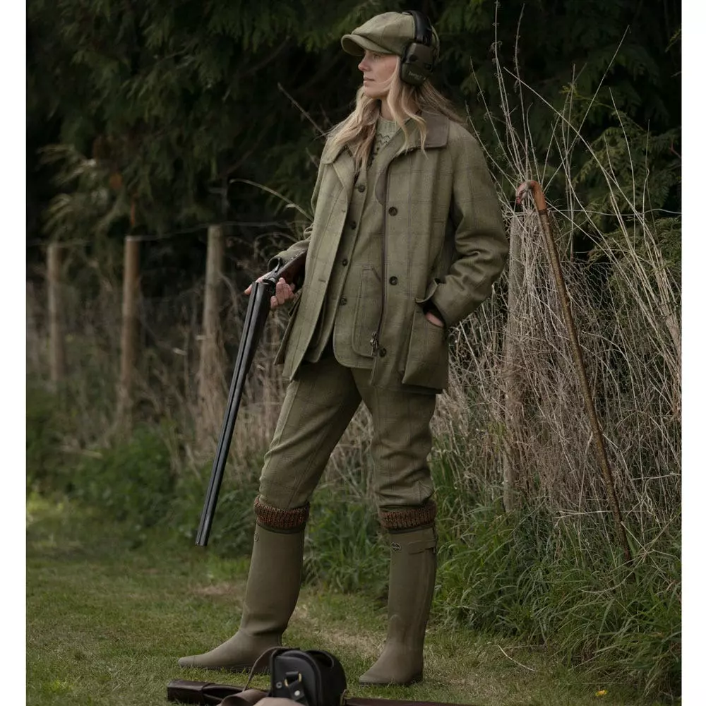 The Farlows Burghley ladies’ tweed jacket is now one of the classics within our ladieswear collection, and surely an essential part of your women’s shooting attire. For the hardened outdoor enthusiast it can also double up as a wonderful country coat. Our Burghley shooting coat comes in a variety of tweeds that are all exclusively woven for Farlows in Hawick, Scottish Borders. All of our tweeds are finished with a Teflon coating to ensure water naturally runs off the tweed, along with a waterproof membrane drop liner to ensure the coat is 100% waterproof.