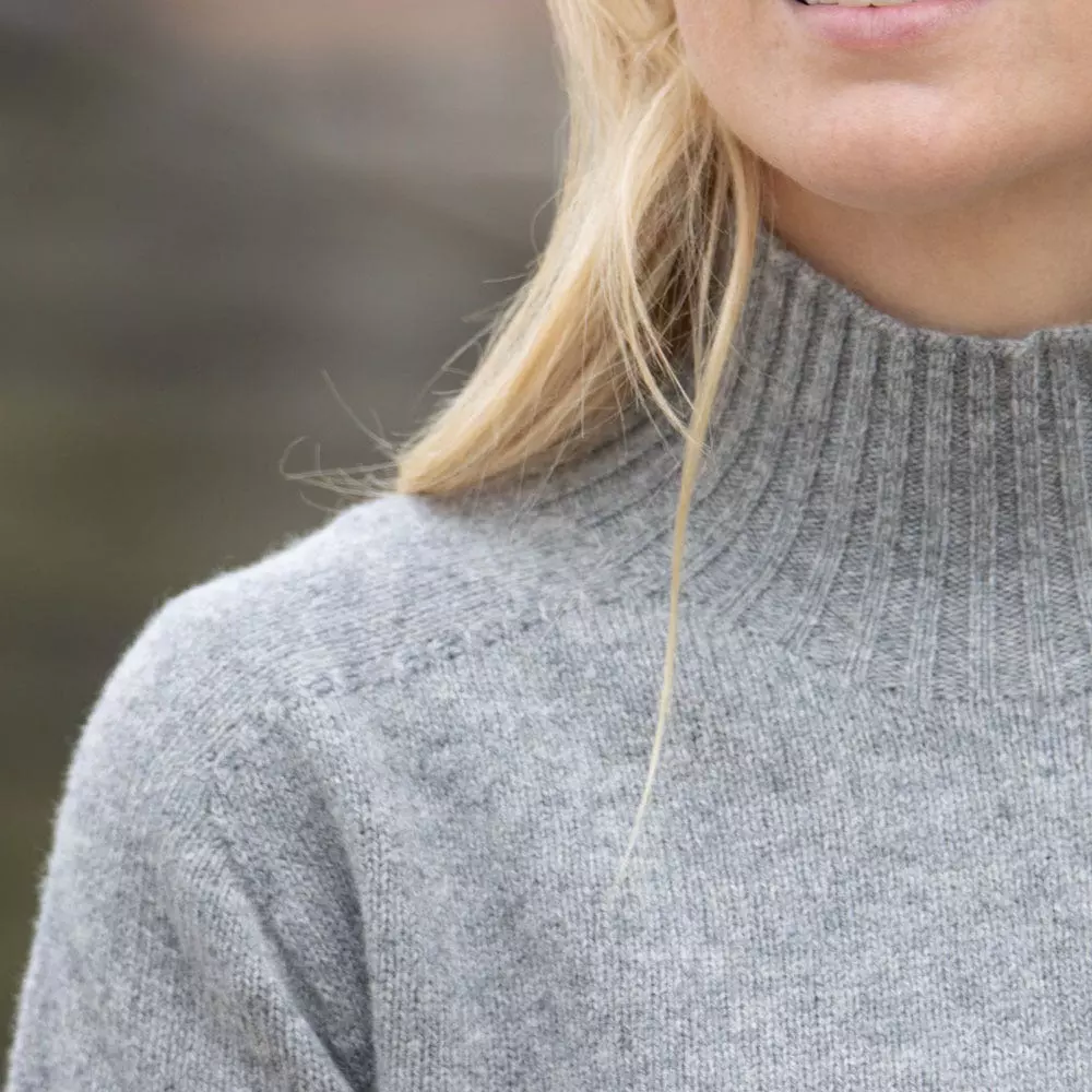 Made for us in Aberdeenshire, North East Scotland, this cosy mock turtle neck jumper is incredibly versatile. To keep you warm on a cold day out in the country, or to throw on in the evening when the chill draws in. The high neck really does make a difference to keeping you that little bit warmer. Produced from a Lamaine lambswool yarn, this lovely jumper is a light to medium weight knit. Great to layer under a Tweed or Loden shooting vest, or under our Burghley or Cotswold coat.