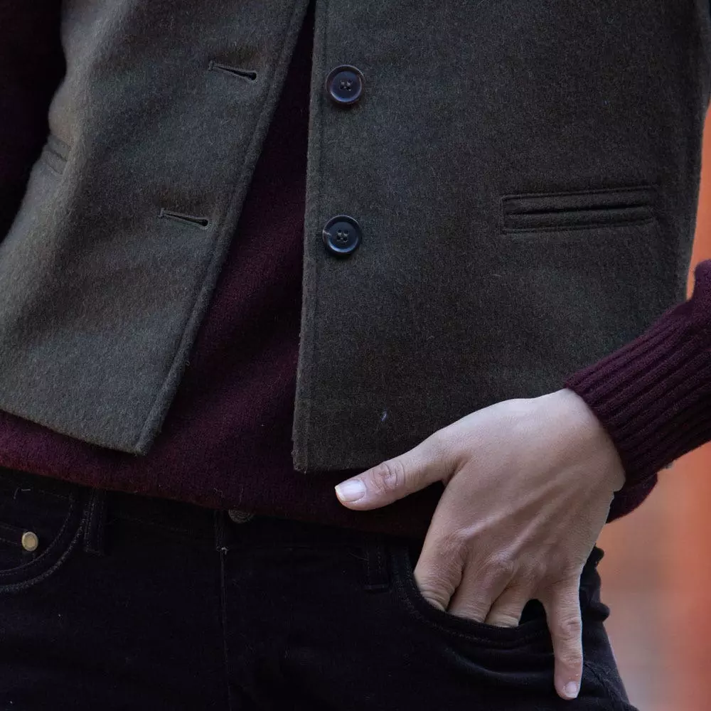 The Farlows Loden Jerkin Waistcoat is made from traditional Loden. This jerkin can be worn as a layer under a coat or tailoring on a cold day, or worn over a shirt in milder weather.