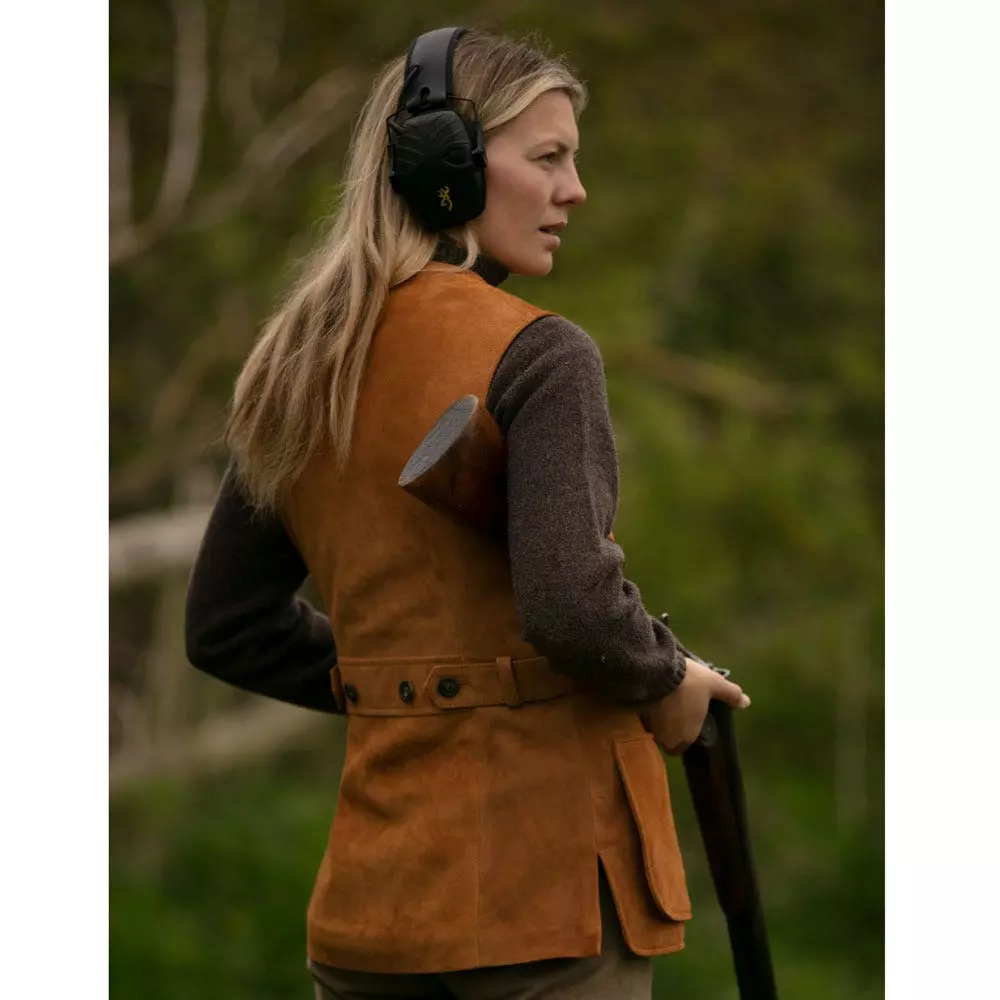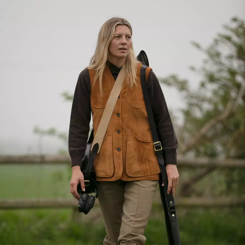 The Farlows Cognac Suede Shooting vest is a very practical yet exceptionally stylish solution for early season shoot days when a coat is not required, or even as a warm layer to wear under a fieldcoat in the colder months. Also referred to as a waistcoat or gilet, this is an essential part of your ladies shooting clothing and country attire wardrobe.