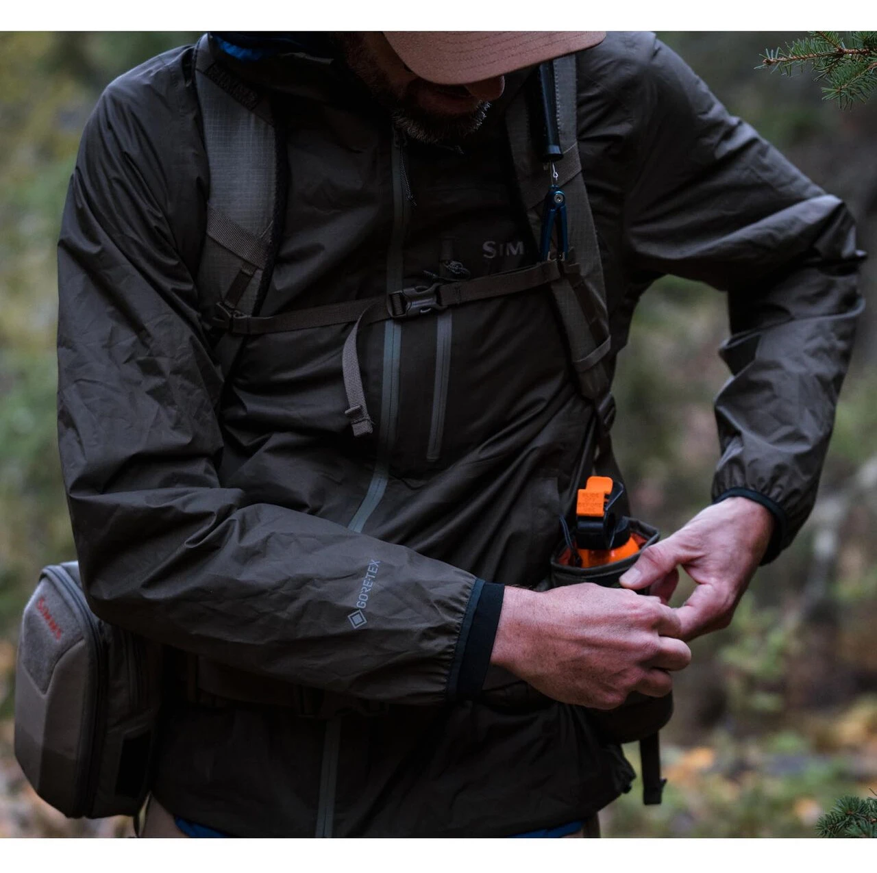 - Zippered chest pocket features self stowing pouch with compatible quick clips to attach to Simms’ Flyweight Waders, packs and accessories.