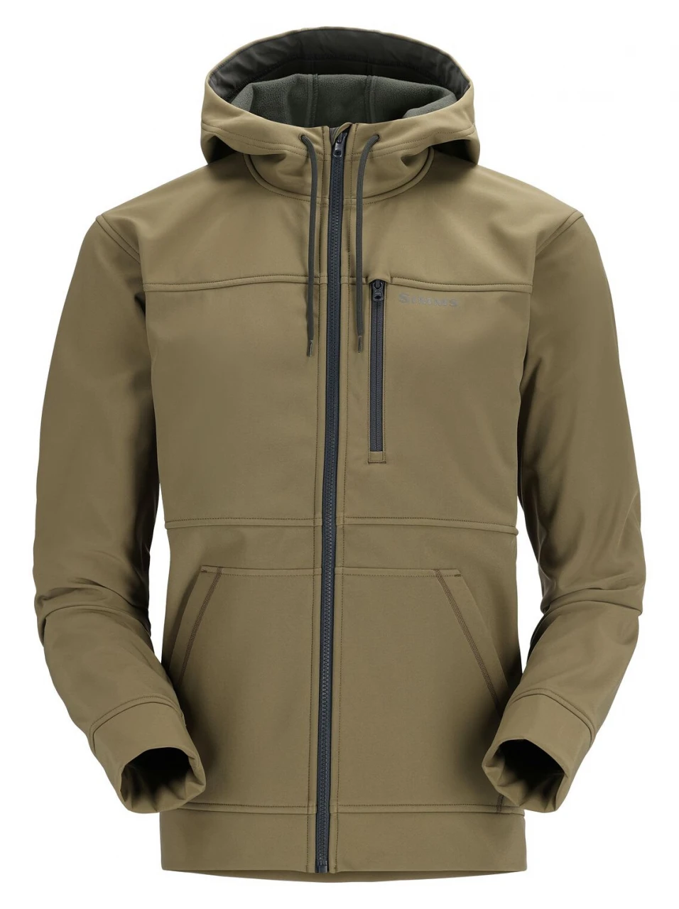 Defining characteristics include a breathable, soft fleece interior, water-resistant externals, and a 3-panel hood with simple drawcord adjustment. The self-fabric cuffs and hem accentuate comfort and warmth, while a zippered chest and 2 hand pockets hold everything you need.