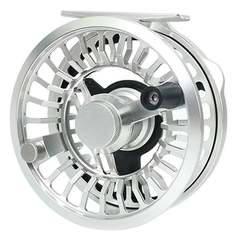 Large arbor spool for swift line retrieval and easy no-tools needed left and right hand retrieval change.