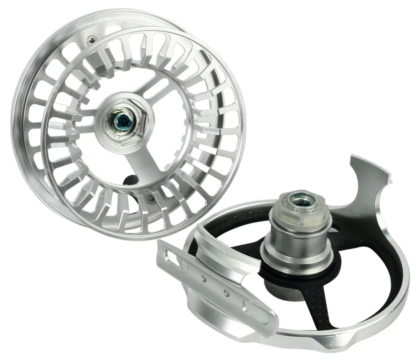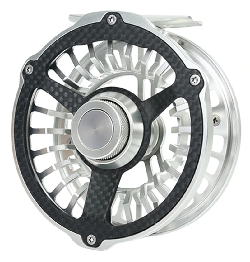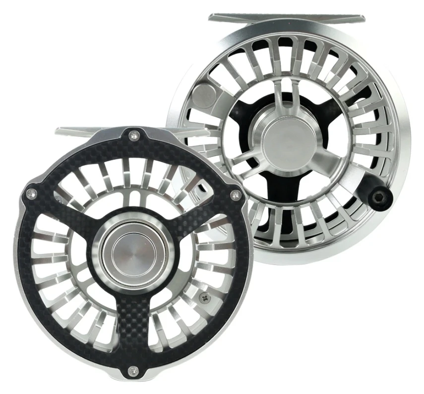 CNC Machined Cut 6061-T6 Bar-Stock Aluminum with an Advanced Ultra-Light Carbon Fiber Frame for reduced reel weight and increased durability