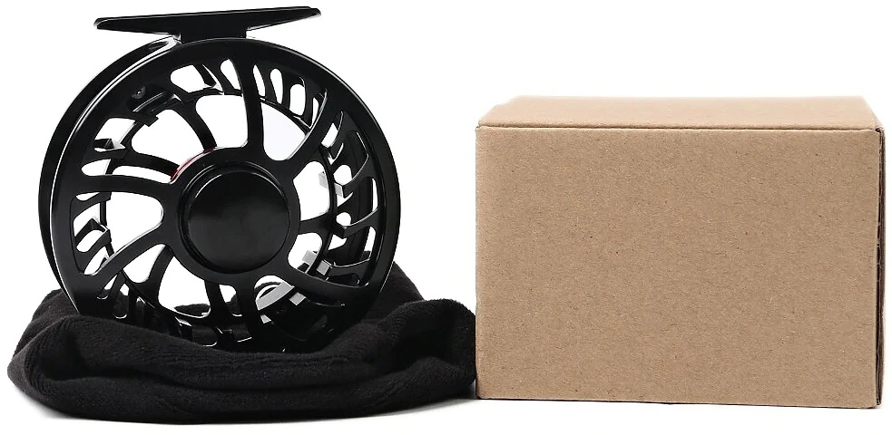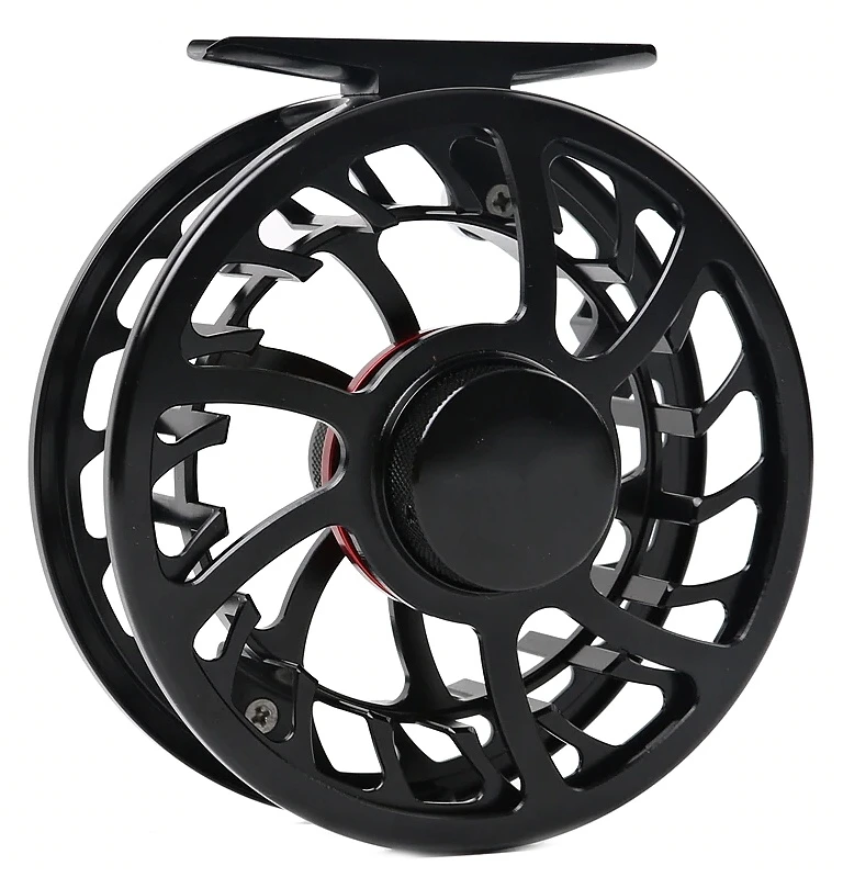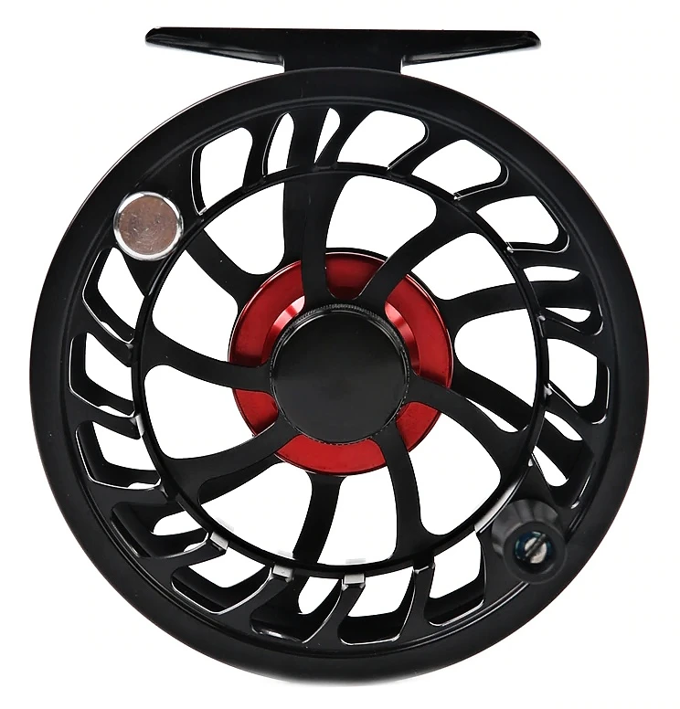 Superlight, perfectly machined fly reel with large arbor made from high quality aluminum in black color and red disc drag. A very fine drag system that works at all times. The spool rotates on quality needle bearings. Excellent reel in attractive color and at a great price!