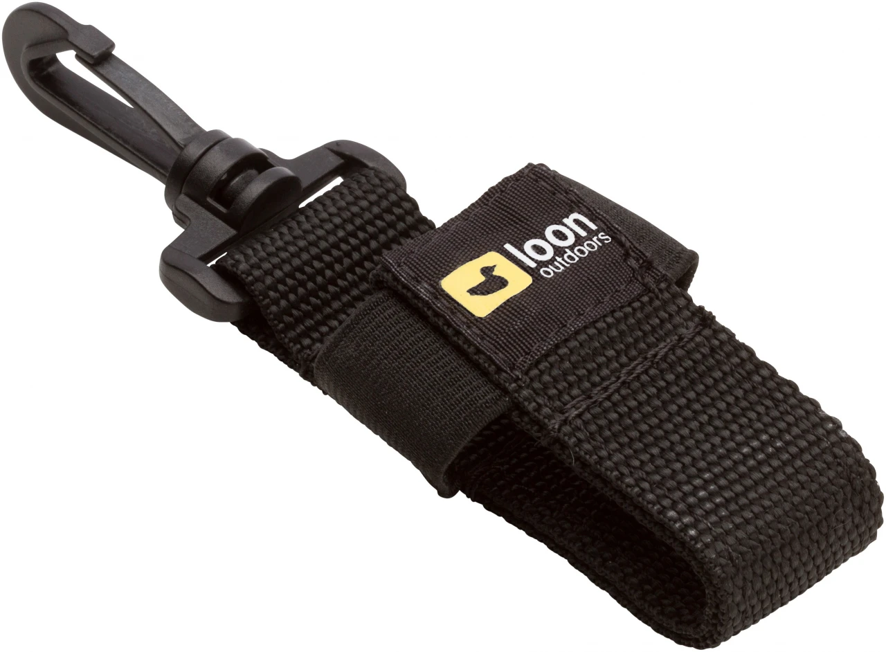 How to use: Slide bottle down into caddie. Secure with elastic strap. Attach to vest, pack, etc.